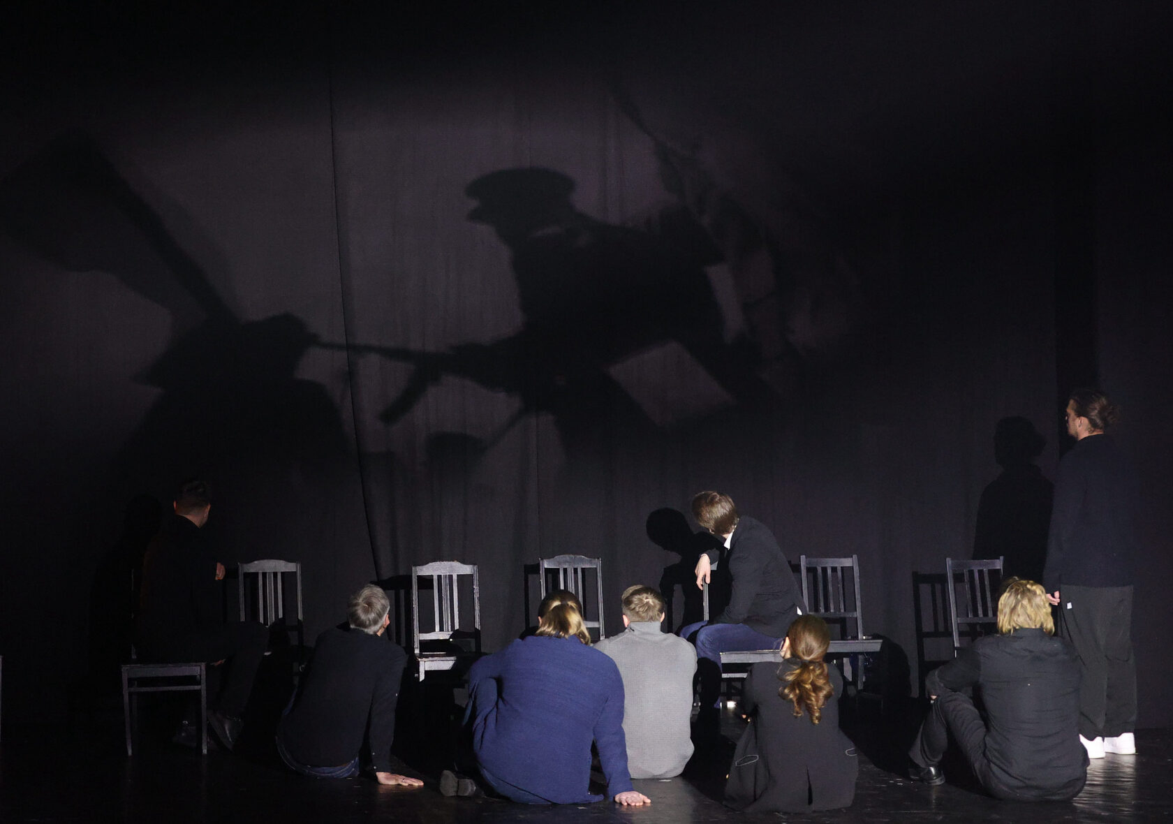 В спектакле используются документальные кинохроники военных лет
