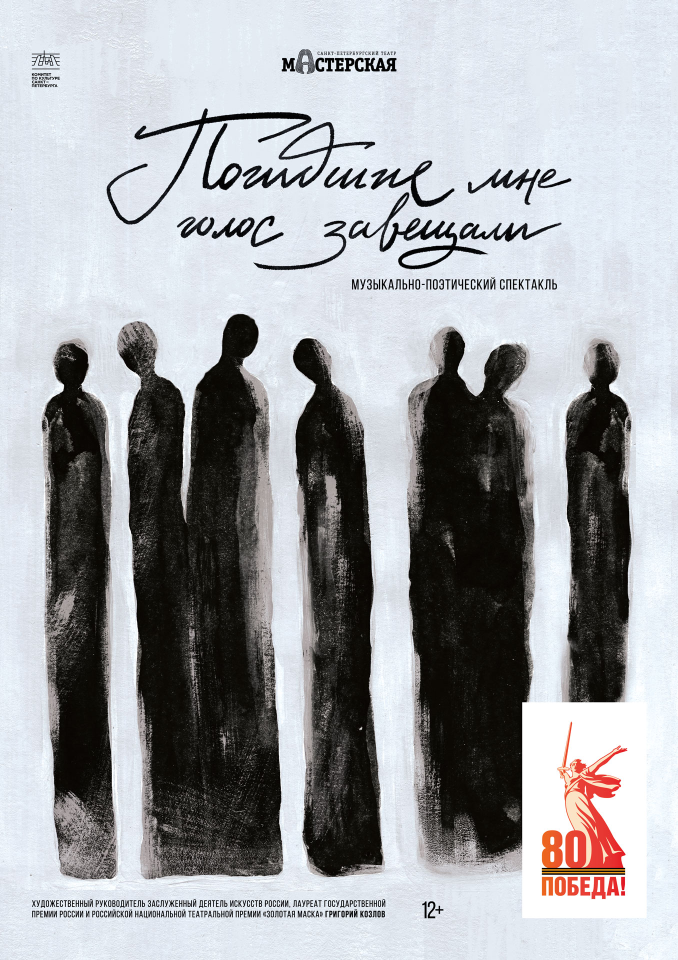 «Погибшие мне голос завещали» – поэтическая постановка Максима Блинова, названная строфой из стихотворения Галины Николаевой. В спектакле прозвучат и другие произведения поэтов – участников Великой Отечественной войны: Булата Окуджавы, Юрия Левитансконо, Вадима Шефнера, Расула Гамзатова и многих других, а также музыка современного композитора Алана Алиева.